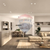 Ampio soggiorno open space con cucina a vista e accesso diretto a un grande terrazzo vivibile