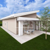 L'immobile viene edificato su un unico piano piano da 90 mq calpestabili, distribuiti in 3 locali ed internamente composto da: ingresso su zona soggiorno con cucina a vista in open-space di 36 mq totali; due spaziose camere da letto da 14 e 16 mq e un bagno con doccia