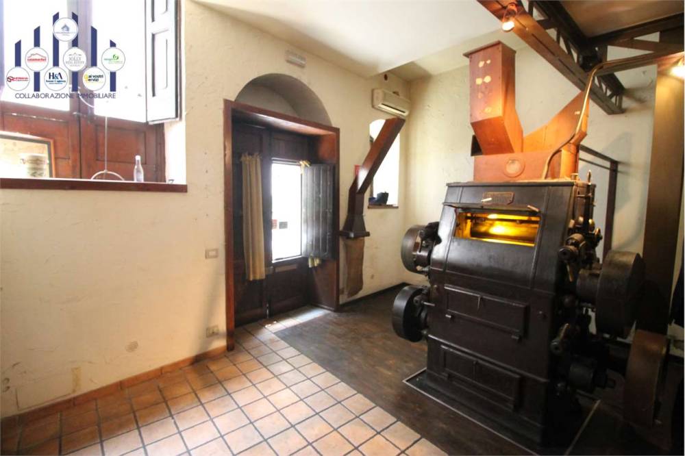 In via macello, una delle caratteristiche stradine del borgo, tra la basilica di San Sebastiano e la chiesa di San Paolo, proponiamo in vendita un vecchio molino a palmento realizzato a fine Ottocento trasformato in uno dei primi esemplari di molino a cilindri esistenti nelle nostre zone e tramutato poi in un locale commerciale cat. C/1. Disposto su più livelli troviamo al piano strada un unico vano con vecchie macchine caratteristiche del molino adibito a sala ristorazione, al piano superiore un vano soppalcato con la cucina;