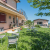 Lintera proprietà è rifinita in stile rustico chic, con travi in legno a vista, pavimenti in cotto e una scenografica scalinata interna. Il giardino, molto curato, offre angoli relax, zona barbecue per cene allaperto e una straordinaria vista aperta sul verde e sul mare.