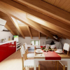 Disposto su due livelli collegati da scala interna, si compone al piano primo di ingresso, soggiorno con angolo cottura, disimpegno notte, camera matrimoniale, bagno, terrazzo esterno; al piano mansarda con soffitto in travi lamellari a vista, due camere, un bagno ed un balcone.