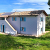 Struttura portante in acciaio e legno di castagno, soffitti con travi a vista, impianto di riscaldamento a pavimento, clima in ogni ambiente, pavimentazione in cotto fatto a mano nella zona giorno e parquet nel reparto notte, porte in legno massello, infissi in legno provvisti di vetri termici e scuri in legno.