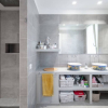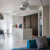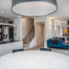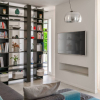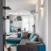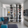 L'ingresso dell'abitazione, separato dalla zona living che si intravede dietro una libreria di desig, ci regala subito la percezione dei grandi spazi e della luce che caratterizzano tutta la dimora.