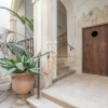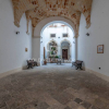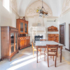 Dopo aver varcato il portone principale, si accede a un androne imponente dalle generose dimensioni, caratterizzato da volte in carparo a vista che evocano latmosfera storica di Galatina. Sullo stesso livello, una dependance accoglie una spaziosa zona living con volte a botte e camino, angolo cottura, bagno e, al piano superiore, due camere da letto con ingresso indipendente. La scala originale in pietra leccese conduce alla parte principale della proprietà, che si apre su una magnifica area dalle innumerevoli destinazioni, offrendo accesso sia alla luminosa zona pranzo con camino in pietra leccese, seguita dal cucinotto in muratura in ceramica di Vietri, sia al sontuoso salone con doppia esposizione e camino dalle fattezze storiche.