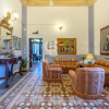 La proprietà si sviluppa su tre livelli e offre una superficie commerciale di oltre 635 mq, con ambienti ampi, eleganti e carichi di suggestione. Il viale alberato conduce alla dimora, dove lingresso privo di barriere architettoniche apre su un raffinato salone affrescato, cuore rappresentativo della casa. Il piano rialzato ospita quattro camere da letto, alcune delle quali conservano affreschi originali, e tre bagni. Sul lato destro dellingresso, una zona giorno accogliente accoglie sala da pranzo con camino, cucina in muratura e spaziosa dispensa. Dal salone si accede sia alla cantina di circa 70 mq, perfetta per diventare unarea benessere o degustazione, sia al piano superiore dove si trova una quinta camera con bagno.