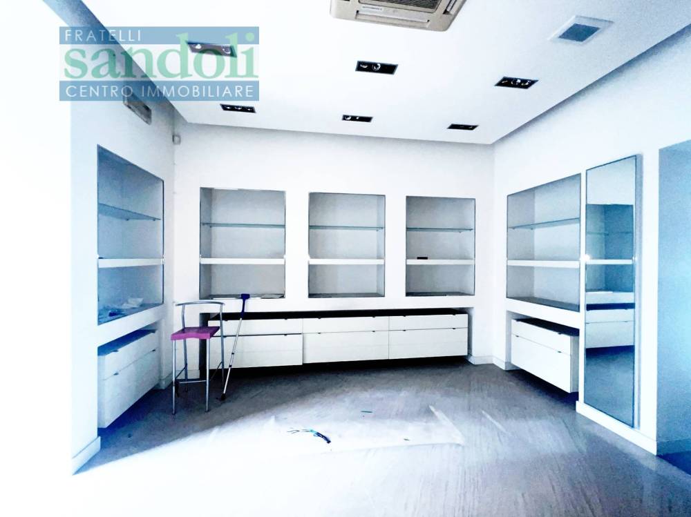 Il locale è composto da locale vendita, corridoio che accede a secondo locale, ripostiglio e retro con servizio per un totale di circa 100 mq.