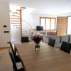 Al piano terra si viene accolti da una zona giorno ariosa e inondata di luce naturale, dove la cucina e il soggiorno sono separati solo visivamente dalla presenza scenica di una maestosa stufa in maiolica che oltre a garantire un calore avvolgente nei mesi invernali, è un elemento esclusivo darredo che dona eleganza e carattere anche destate.