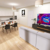 Il trivano sarà composto da un ampio soggiorno con cucina di 28 mq, 2 camere matrimoniali di 16,42 e 15,08 e due bagni completi