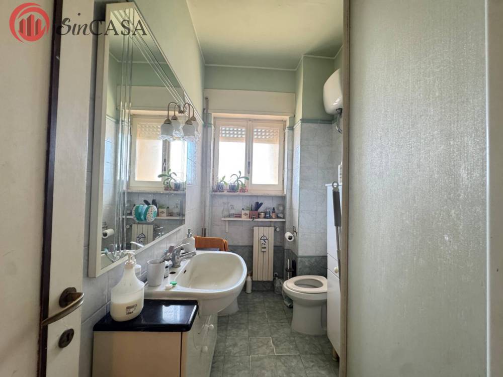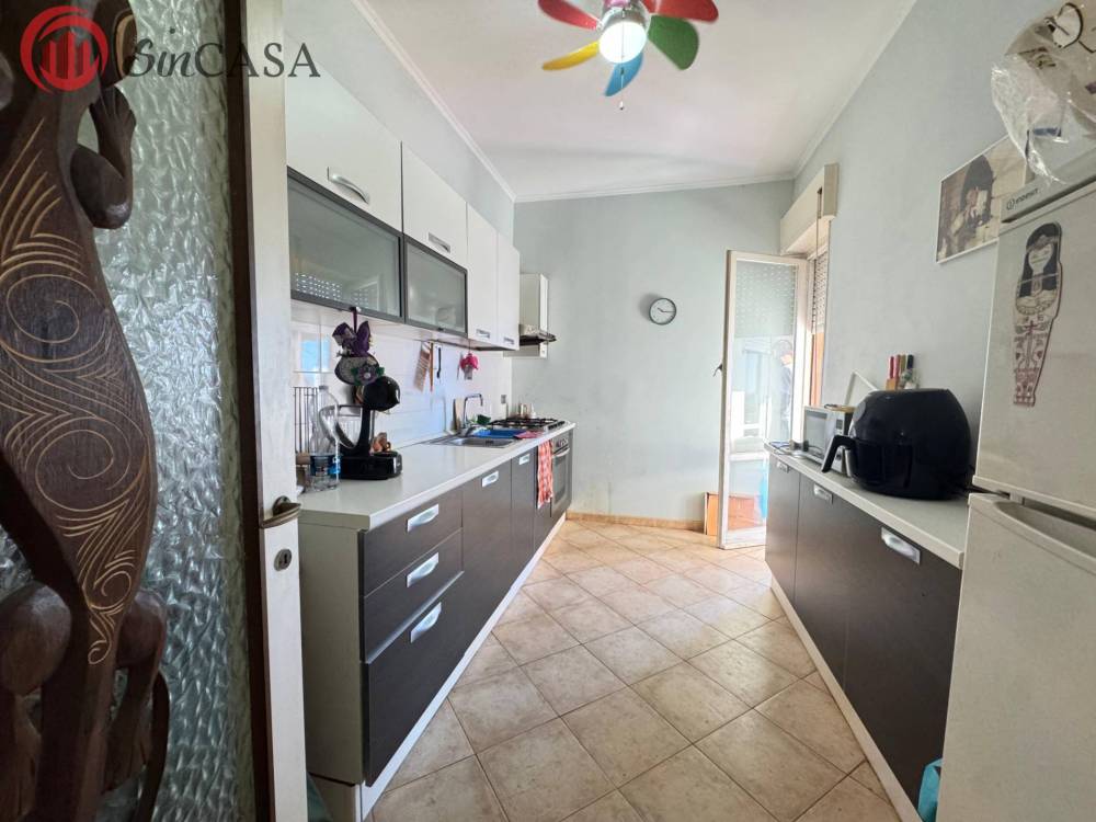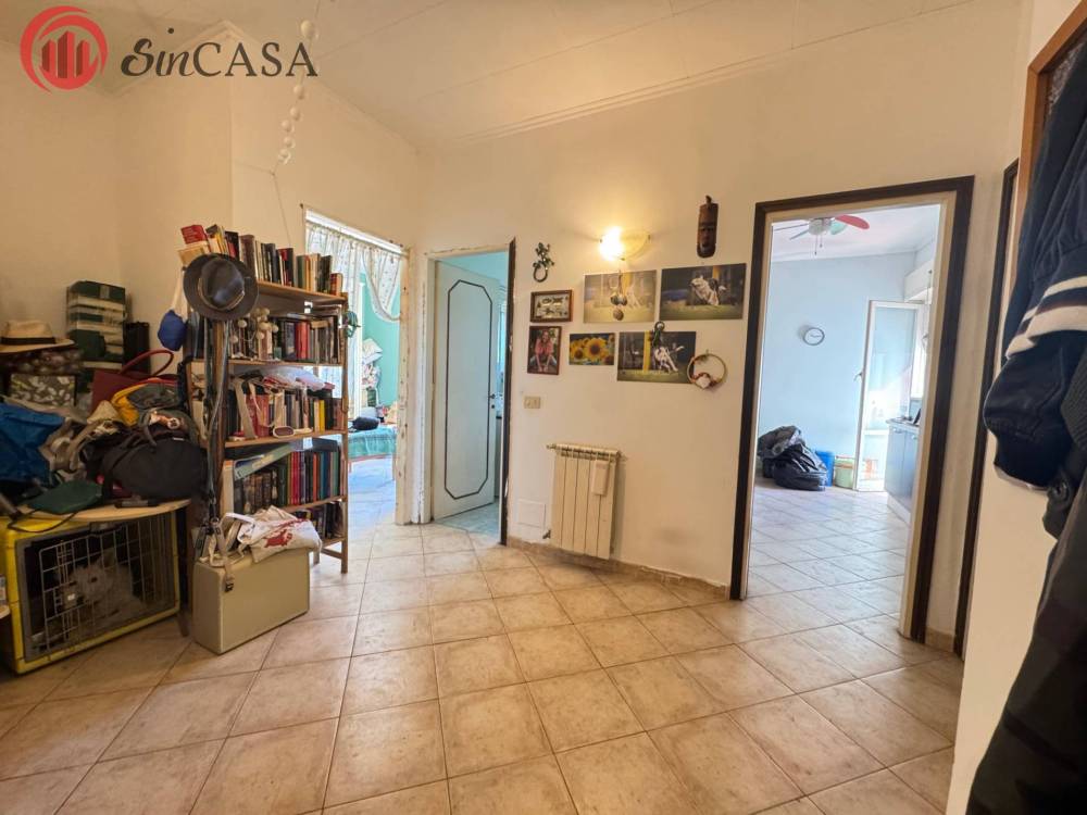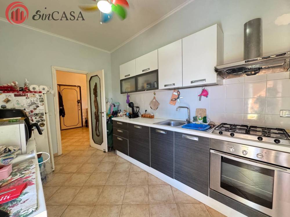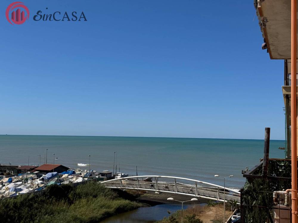 Appartamento vista mare posto al quarto piano con ascensore. Ingresso, salone, cucina, camera matrimoniale e bagno. Due balconi. Box auto di circa 13 mq. Da ristrutturare.