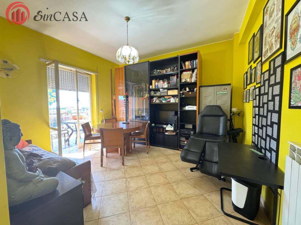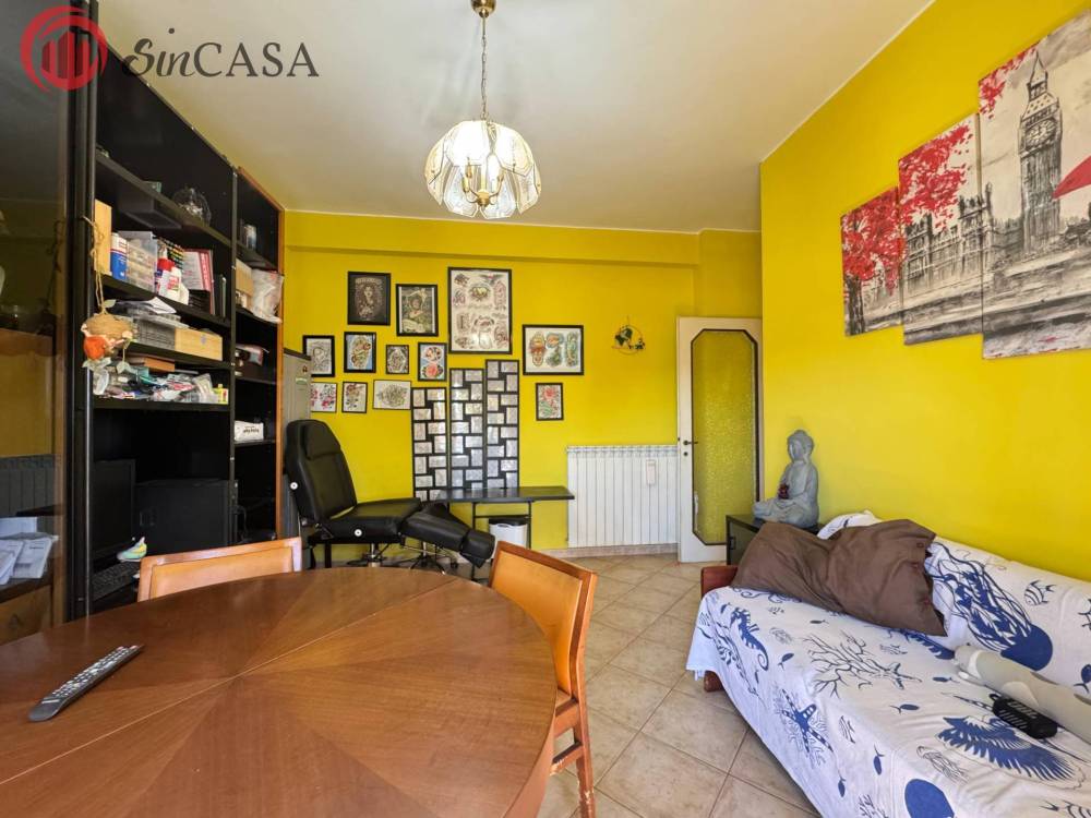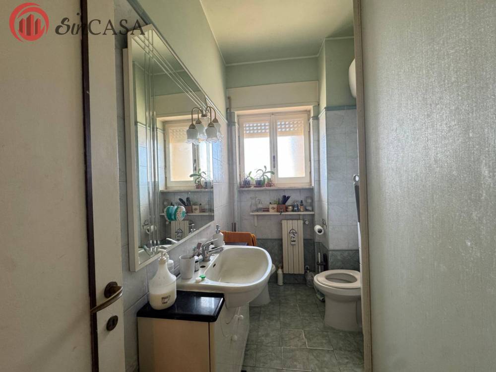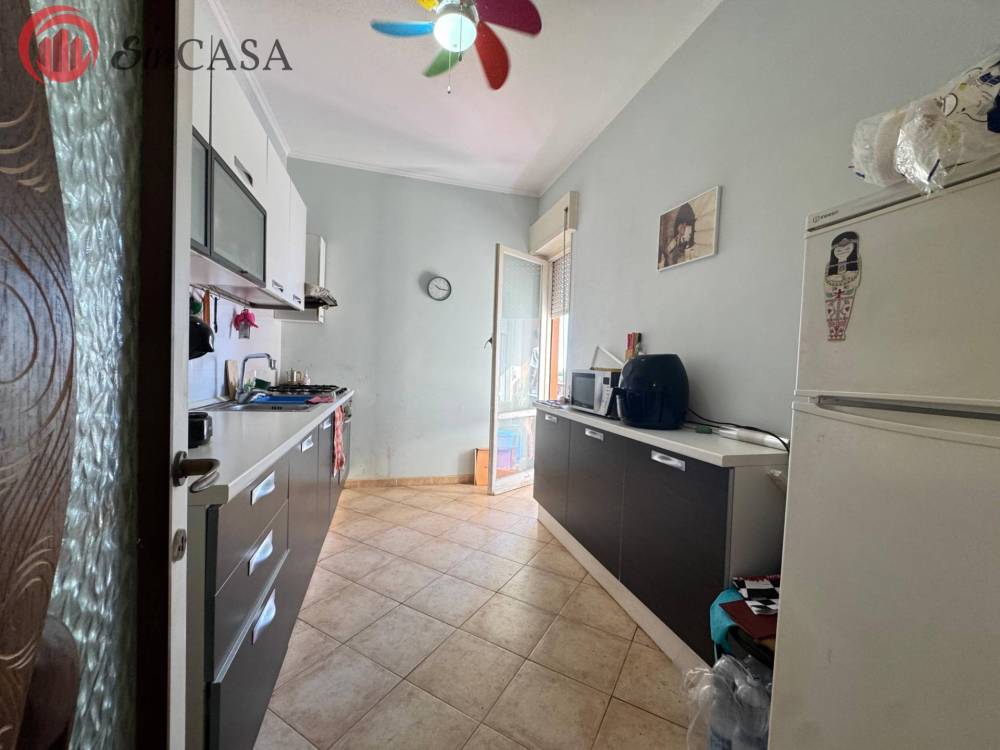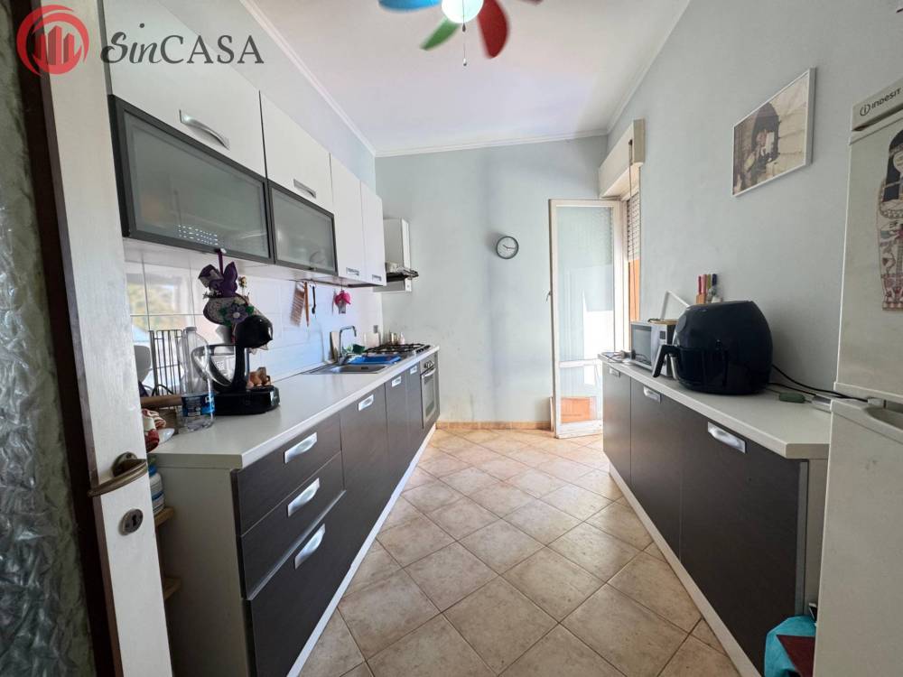 Appartamento vista mare posto al quarto piano con ascensore. Ingresso, salone, cucina, camera matrimoniale e bagno. Due balconi. Box auto di circa 13 mq. Da ristrutturare.