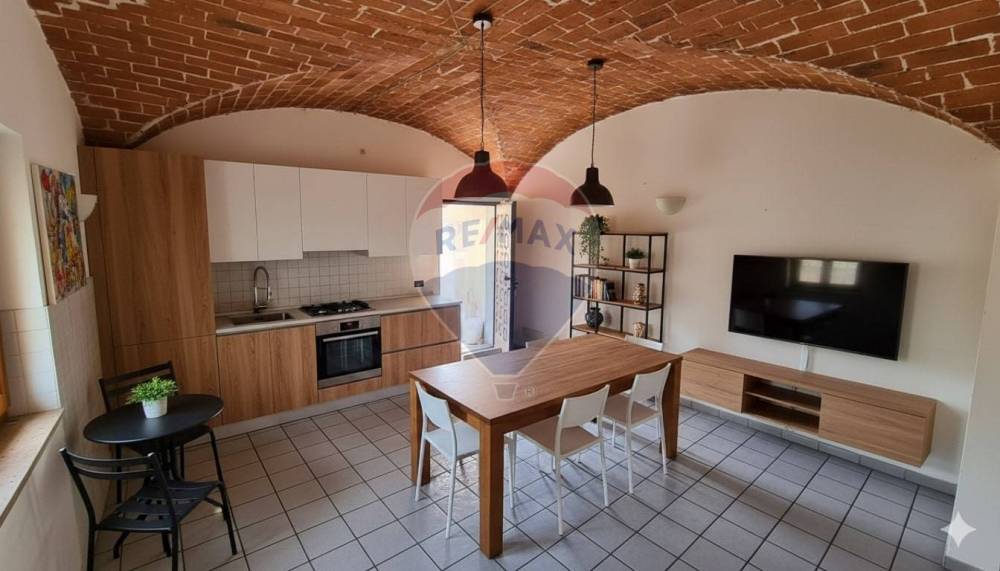 Dentro, la cucina con soffitto a volte custodisce il calore delle tradizioni e dei momenti condivisi.