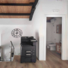 La suddivisione interna in stanze è stata realizzata attraverso un sistema di pareti divisorie appositamente pensate per uffici e riposizionabili, qualora le esigenze di spazio dovessero cambiare. Limmobile è autonomo e pensato per offrire un ambiente di lavoro funzionale e confortevole con travi a vista dal suo interno.