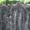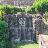 Corte retrostante con grande gazebo in pietra lavica, barbecue e fontana decorativa circondata da piante ornamentali;
