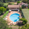 Piscina di forma tondeggiante armoniosamente integrata nellambiente con ampio solarium;