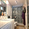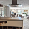 Si accede dal giardino mediante cancello e attraversando il porticato si entra nella grande zona giorno, padroneggiata dall'elegante isola della cucina e dall'accogliente divano angolare. A questo livello c'è anche un funzionale bagno con doccia con antibagno/ripostiglio.