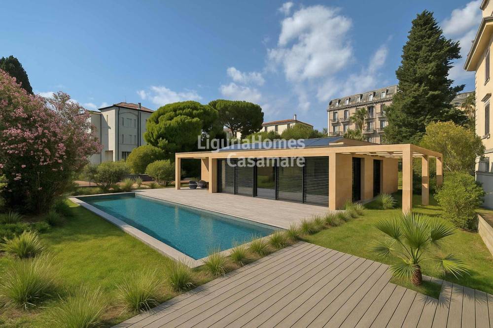 Nel cuore della città delle palme, Bordighera, vendita terreno rarissimo con progetto di una magnifica Villa in stile moderno, caratterizzata da un comodo giardino pianeggiante di 388 m2, ampie vetrate, una splendida piscina ed uno spazioso garage di 45 m2.