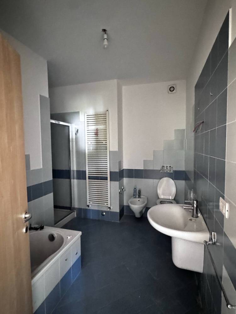 Lappartamento ha una superficie di circa 106 metri quadrati, con 25 metri quadrati di balconi, dove al suo interno troviamo un unico ambiente cucina soggiorno con accesso a due balconi, reparto notte con camera matrimoniale, due camerette una con balcone, due bagni di cui uno con finestra e doccia ed uno senza finestra con al suo interno con doccia e vasca.