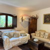 Dalla cucina, dalle linee semplici e moderne, si accede direttamente all'ampio e luminoso soggiorno: il pavimento in cotto e larredamento in legno contribuiscono a creare unatmosfera semplice e familiare. Cuore del soggiorno, però, è senza dubbio il camino a legna, in muratura e con cornice in mattoni e mensola in legno grezzo. La parete è impreziosita da corna di cervo che, richiamando limmaginario delle baite, diventano veri e propri elementi darredo, contribuendo a rafforzare il legame tra la casa e lambiente naturale che la circonda.