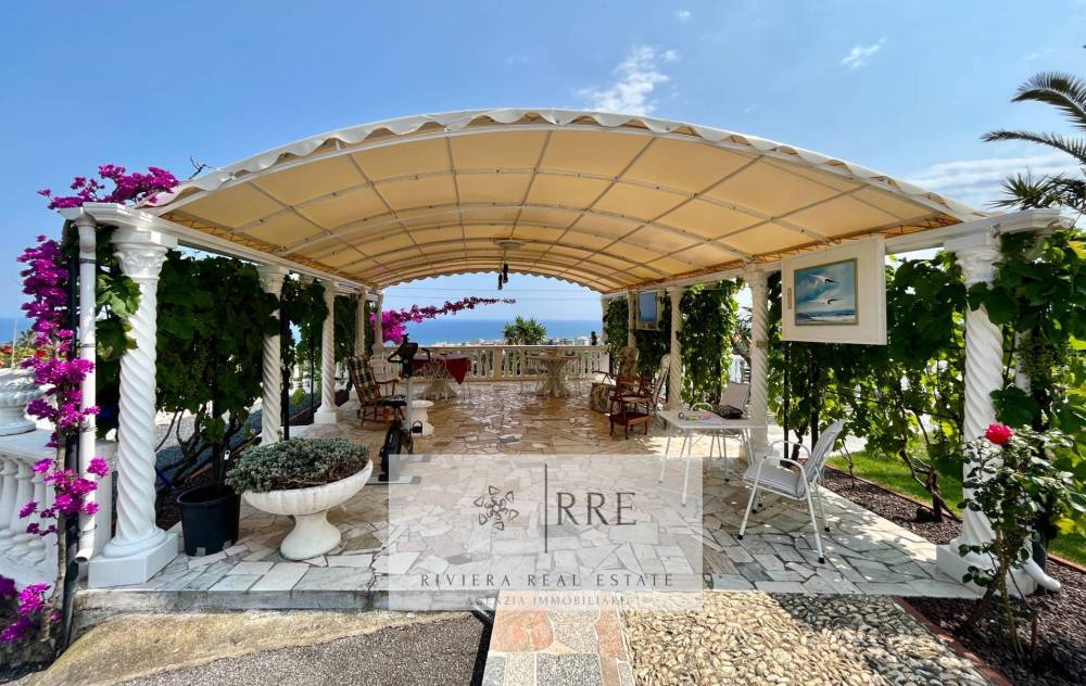 Tutta la proprietà ha al suo esterno una Gazebo di 50 mq. totalmente coperto dal quale si gode di un'incantevole vista mare dominante sul mare e con l' Isola Gallinara sullo sfondo, 2600 mq di terreno circondano la villa, divisi tra giardino, parco con ulivi a macchia mediterranea, prati all'inglese, fiori ornamentali e ogni genere di albero da frutto, con ampie terrazze perfette anche per la realizzazione di una bellissima piscina, il tutto perfettamente recintato.