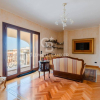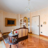 Ingresso su ampia zona living luminosa, con pavimenti in parquet e inserti in marmo di pregio (cornice Siena e marmo azzurro brasiliano a contrasto), elegante e accogliente.