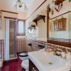 Una raffinata porta in vetro satinato decorata artigianalmente separa la zona giorno dalla zona notte.