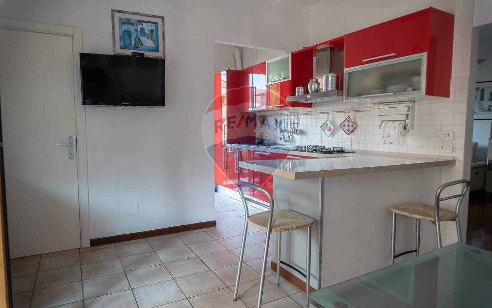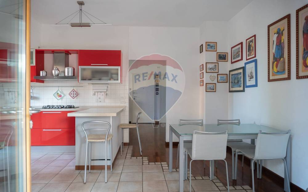 La cucina si affaccia su un luminoso soggiorno doppio, perfetto per momenti di convivialità.