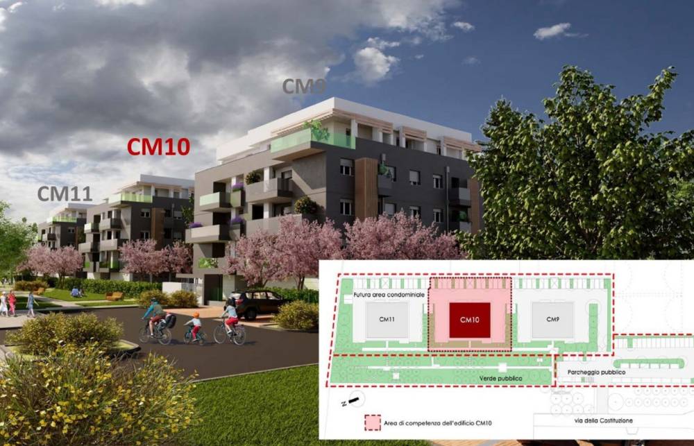 CASTEL MAGGIORE - NUOVA COSTRUZIONE - Nelle immediate vicinanze del Country Club, tra Via Vancini e Via Galliera, è in corso di costruzione un nuovo intervento denominato CM10-B2, con la realizzazione di una palazzina di quattro piani composta da quattordici unità immobiliari. L'appartamento 2, inserito nella palazzina B2, si trova al 1° piano servito da ascensore ed è composto da ingresso sul soggiorno con zona cucina separata ed accesso al terrazzo abitabile di circa 10mq, disimpegno notte, tre camere da letto, e doppi servizi, di cui uno con accesso ad ulteriore balcone, oltre a ripostiglio/lavanderia. Al piano terra, ampia autorimessa da oltre 20 mq e posto auto. Immobile in classe A4, riscaldamento con pompa di calore a pavimento, aria condizionata, impianto fotovoltaico, tapparelle motorizzate. Consegna settembre 2027. Rif. ICM823 #divisionecantieri
