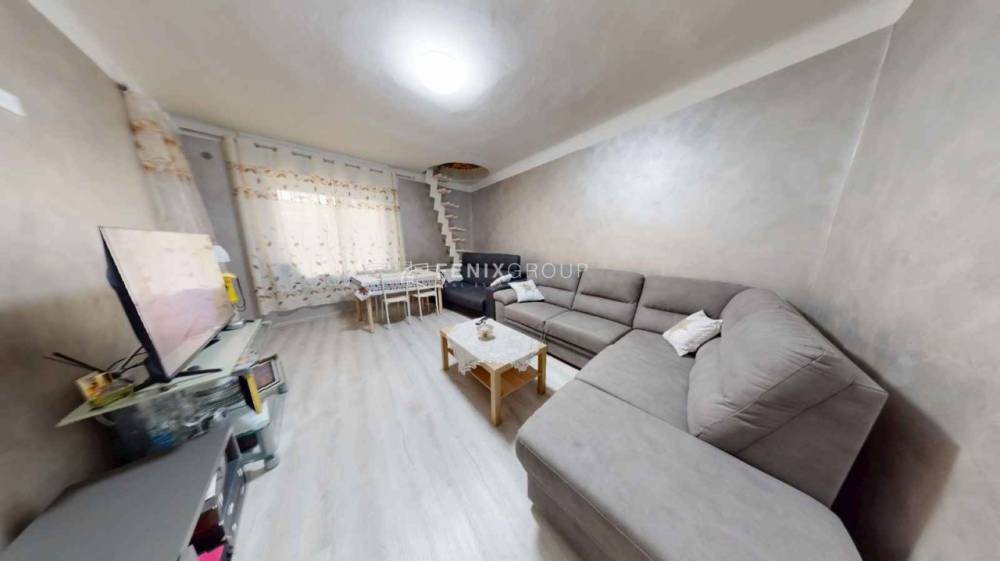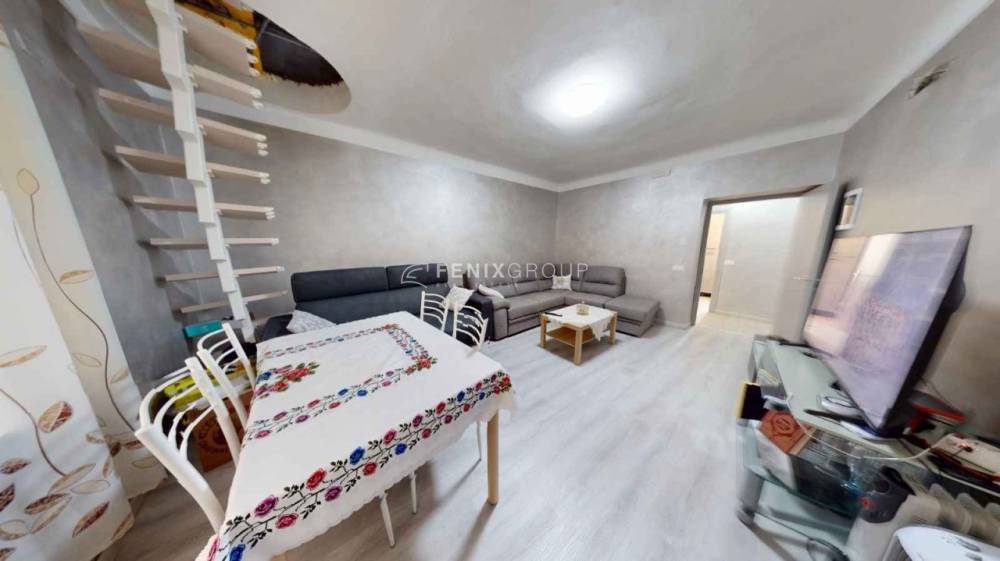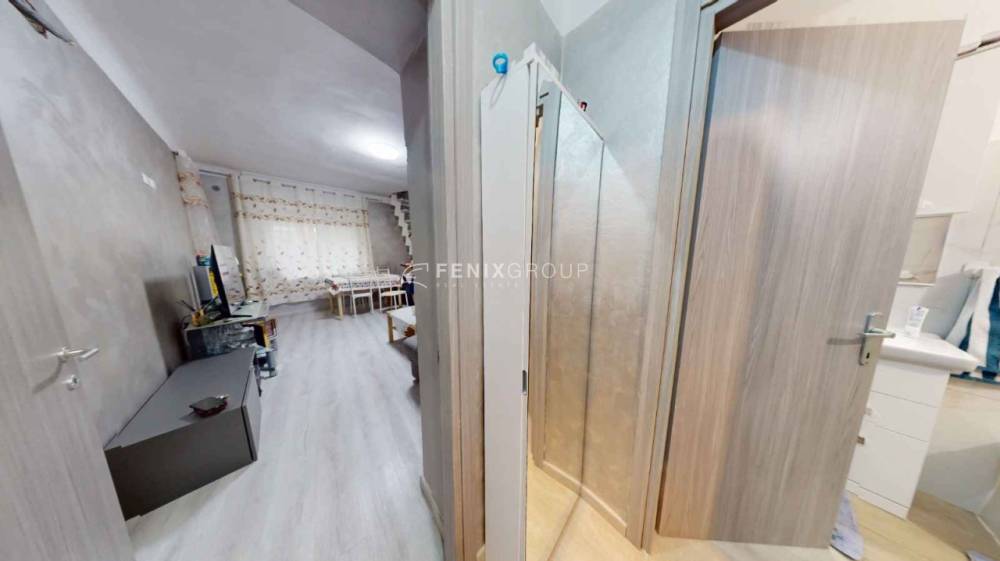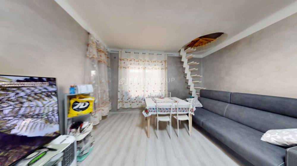 L’abitazione si sviluppa su una superficie complessiva di circa 80 mq. Al piano terra si accede tramite un ingresso che introduce a un disimpegno centrale: sulla destra troviamo la cucina abitabile, di fronte un bagno finestrato con doccia, mentre sulla sinistra si apre un ampio soggiorno, luminoso e accogliente, dotato di un comodo ripostiglio sottoscala.