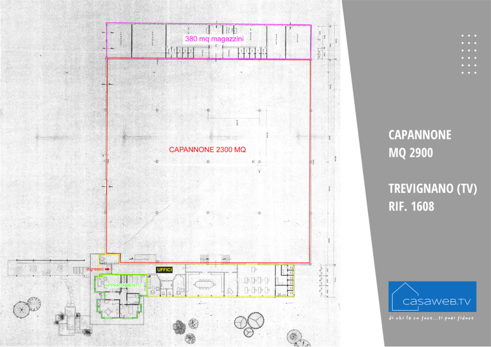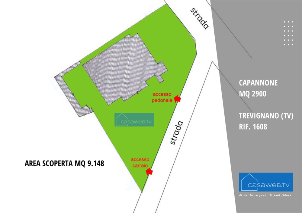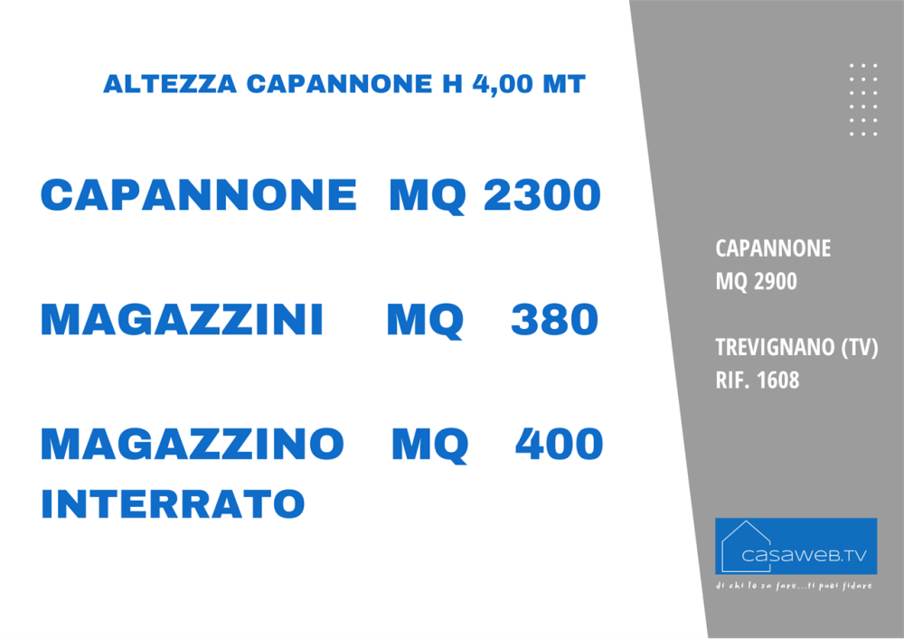 Nel Comune di Trevignano (TV) in località Signoressa  fronte strada Feltrina, proponiamo la locazione di un capannone a destinazione artigianale  industriale  di circa 2800 mq. L'immobile dispone infatti di 2300 mq di superficie con altezza sotto tiranti di 4,00 mt, inoltre di 380 mq di uffici, di 380 mq di magazzini e di 400 mq di magazzino al piano interrato. All'esterno gode di terreno pertinenziale di oltre 9.000 mq. E' possibile scorporare gli uffici come è possibile avere in locazione anche l'appartamento dedicato al custode di circa 80 mq il cui canone di locazione va aggiunto a quello del capannone. La posizione fronte strada Feltrina, l'ampia disponibilità di parcheggi, la grande visibilità e la vicinanza al casello autostradale della Pedemontana ne fanno un immobile di sicuro interesse che si trova  a 15 minuti dal centro di Treviso e da quello di Montebelluna.