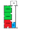 L'immobile si presenta con un ingresso accogliente, soggiorno con angolo cottura e camino, due camere da letto e un bagno.