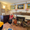 Piano primo, la zona antistante il portone d'ingresso è protetta da un'ampia tettoia. All'interno si trovano l'ingresso, il soggiorno, la sala da pranzo, un'ampia cucina con accesso a un portico esterno, un ripostiglio, un bagno adibito anche a locale tecnico per la caldaia e l'accumulo di acqua sanitaria. Sullo stesso livello, esternamente al portico si accede al grande camino coperto.
