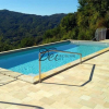 La proprietà include una spaziosa terrazza pavimentata esposta a sud-ovest, un terreno terrazzato adibito a uliveto e frutteto, oltre a una piscina con vista mozzafiato condivisa con un'altra proprietà. Le due abitazioni condividono esclusivamente la piscina, il solarium, l'impianto fotovoltaico e i vani tecnici situati sul retro. Il parcheggio, la terrazza, il terreno e il sentiero che conduce alla piscina sono di uso esclusivo e non gravati da servitù di passaggio.