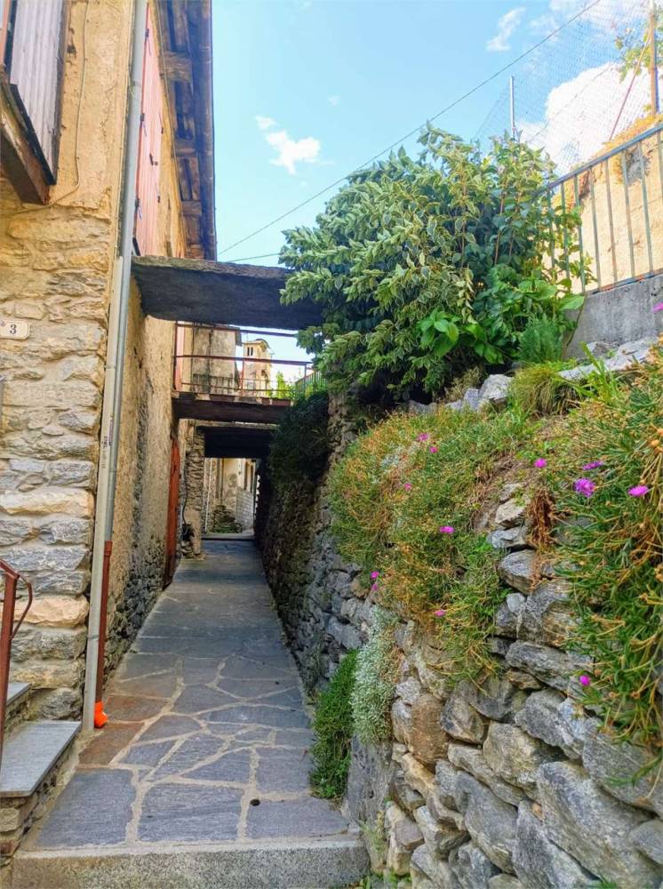 A Varzo nella tranquilla e caratteristica frazione di Sale', vendiamo terratetto completamente da ristrutturare di 110 metri quadri commerciali. La struttura è integrata in un complesso edilizio già oggetto di rifacimento e si compone di due parti connesse ma separate che possono essere messe in comunicazione. Da un lato un cortiletto conduce a due locali, un ampio sottotetto e una cantina. L'altra porzione è posta su due livelli: un'ampia sala con terrazzo panoramico al piano alto, un altro locale sotto.Anche qui è presente una cantina. Il tetto è in piode e anch'esso necessita di interventi importanti.