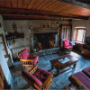 Una scala interna in legno conduce al primo piano dove un disimpegno centrale ospita una stufa a legna, strategicamente posizionata per riscaldare all'occorrenza gli ambienti di questo livello laddove non serva far ricorso ad altre fonti. Questo livello è composto da 3 camere da letto esposte a sud e quindi molto luminose ; da ognuna si esce su lungo balcone con vista panoramica su monti e vallate circostanti. Abbiamo poi un moderno bagno con vasca, e un disimpegno con uscita posteriore. L' ampia metratura dell'immobile lo rendono ideale anche per 6/8 persone.