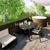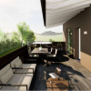 Zona giorno di 30 mq calpestabili, due camere matrimoniali e un bagno, oltre a giardino e terrazza di 30 mq calpestabili;