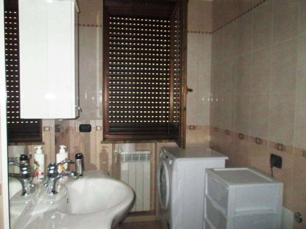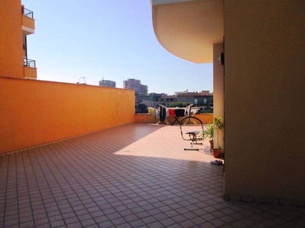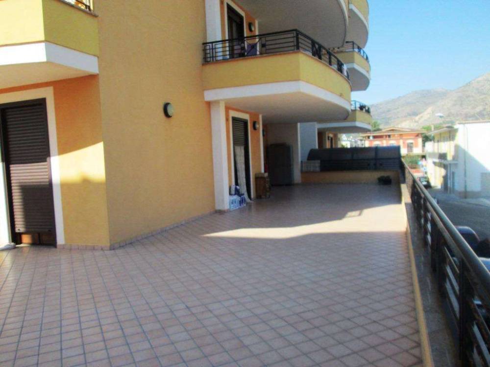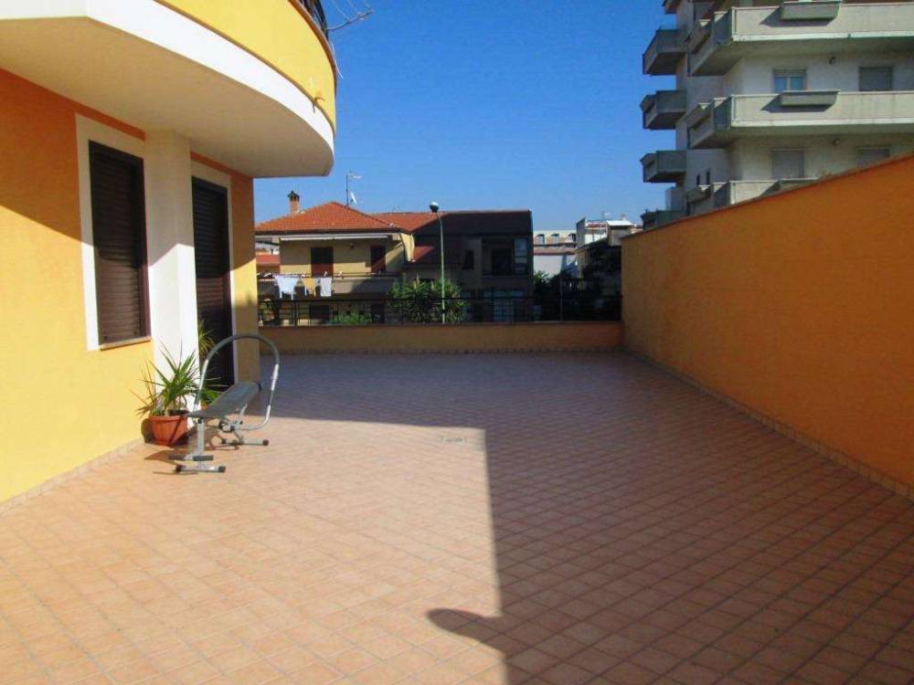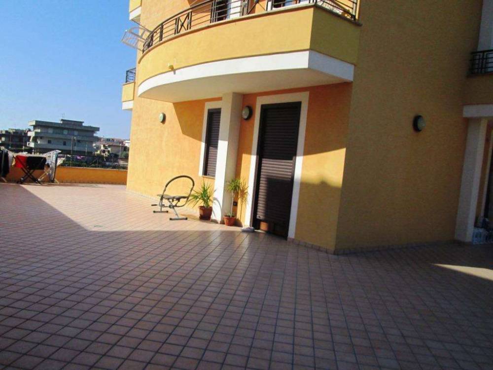 Appartamento al piano primo di 97 mq con ascensore avente ingresso con soggiorno/cucina, tre camere da letto una grande, una media e una piccola, doppi servizi, ampie balconate oltre terrazzo di 100 mq circa fronte piazza comunale, box auto al piano seminterrato di 19 mq, ottimo rifiniture, cancello d'ingresso carrabile automatico, riscaldamento termoautonomo, attualmente locato con ottima rendita.