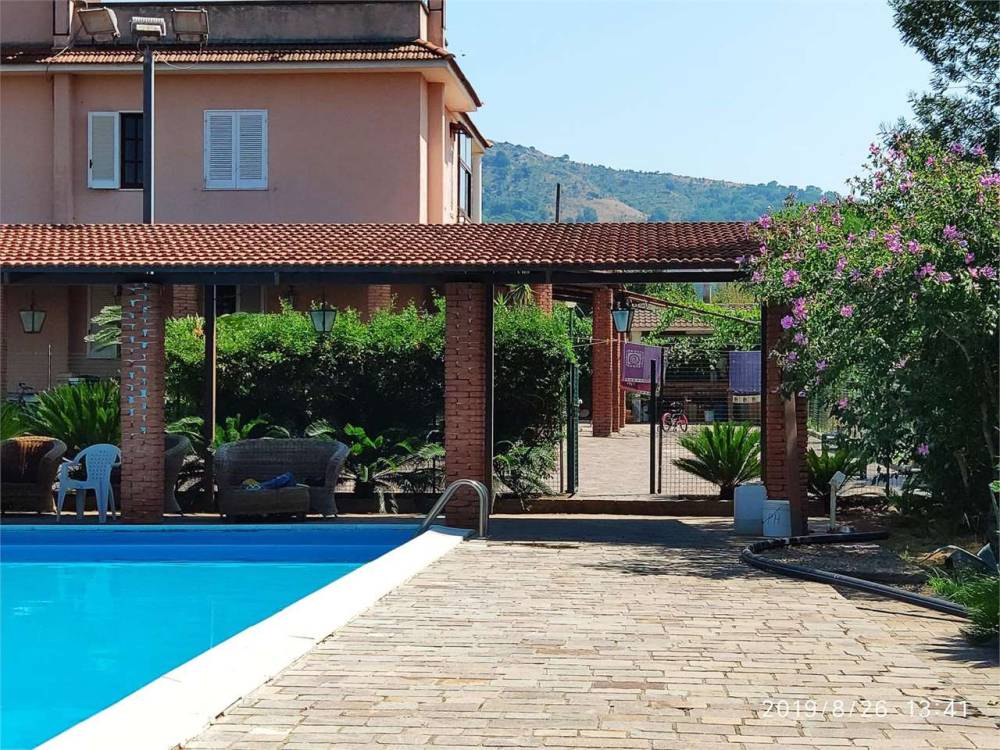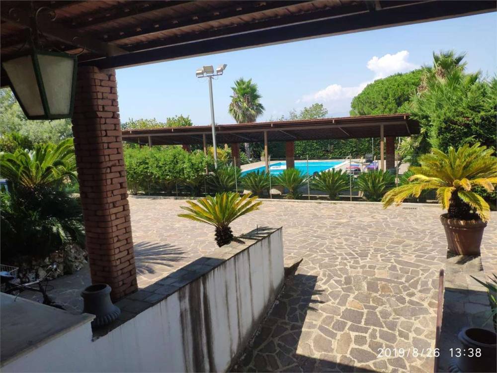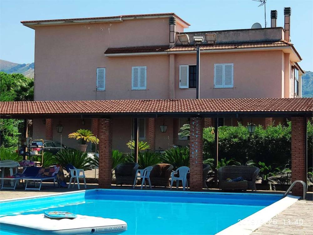 Vendesi su litorale Domizio villa su tre livelli con piscina, ottima per eventuale attività di agriturismo nei pressi di baia felice, così composta: Piano interrato mq 150 cantina; Piano terra mq 150 composto da salone, cucina, camera e due bagni: Piano primo mq 150 composto da cinque camere da letto e tre bagni ; Piano secondo una camera e terrazzo a livello di mq 150; La villa è stata costruita con regolare licenza edilizia ed insiste su un suolo di mq 15.000 coltivato a Vigneto, Uliveto e Frutteto. La casa oltre alle normali utenze ha impianto di irrigazione e pozzo artesiano, forno a legna e brace.