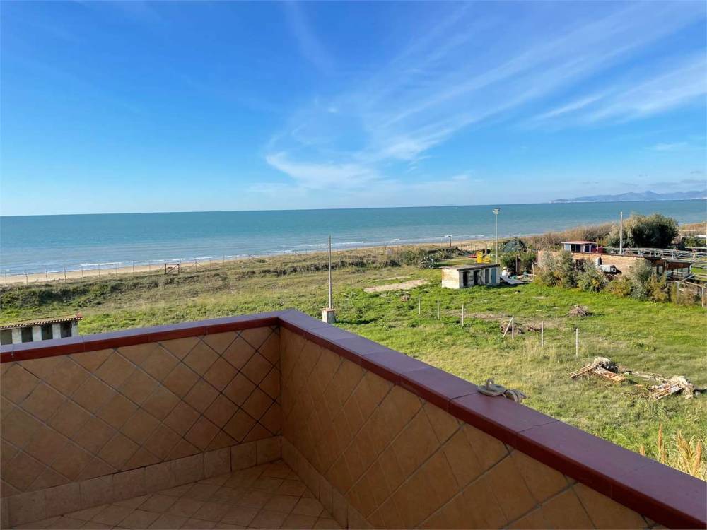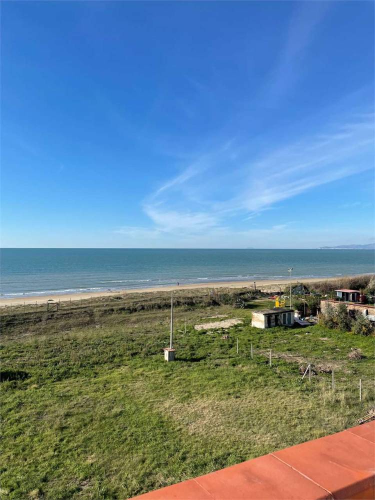 Attico posto al piano terzo, composto da ingresso con ampio soggiorno e cucina abitabile, due grandi camere matrimoniali e un bagno patronale; ampia balconata vista mare ed al piano superiore lastrico di proprietà esclusiva con terrazzo panoramicissimo prima fila sul mare pavimentato, praticabile e calpestabile di circa 100 mq, ottime rifiniture, recentemente ristrutturato, in ottime condizioni, pronto all'uso, ideale per le vacanze; locale garage di 25 mq circa oltre posto auto interno scoperto assegnato.