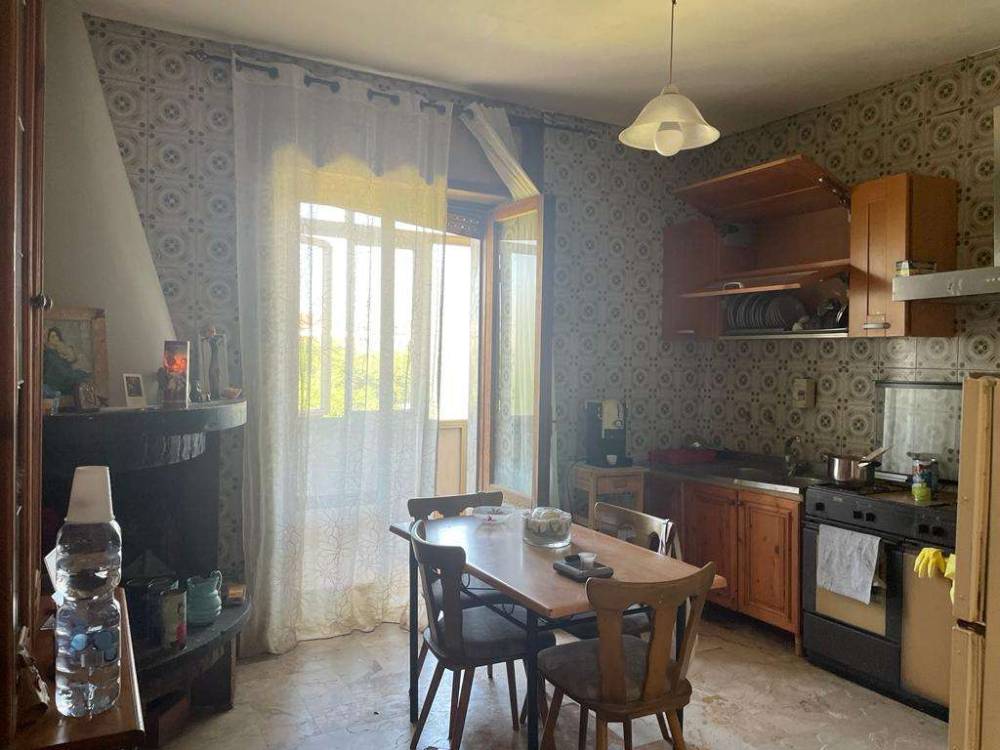 Appartamento, uso civile residenziale, in piccolo fabbricato indipendente di sole due unità, posto al piano primo, di circa 130 mq avente consistenza di 6 vani catastali, composto da ingresso con soggiorno abitabile, cucina con veranda e camino, tre ampie camere da letto e un bagno; ampie balconate che circondano l'intero appartamento, tre posti auto scoperti, ingresso indipendente, condizioni discrete.