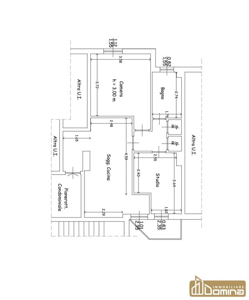 L'immobile è così composto: ingresso, soggiorno con angolo cottura, camera matrimoniale, studio, bagno, ripostiglio.