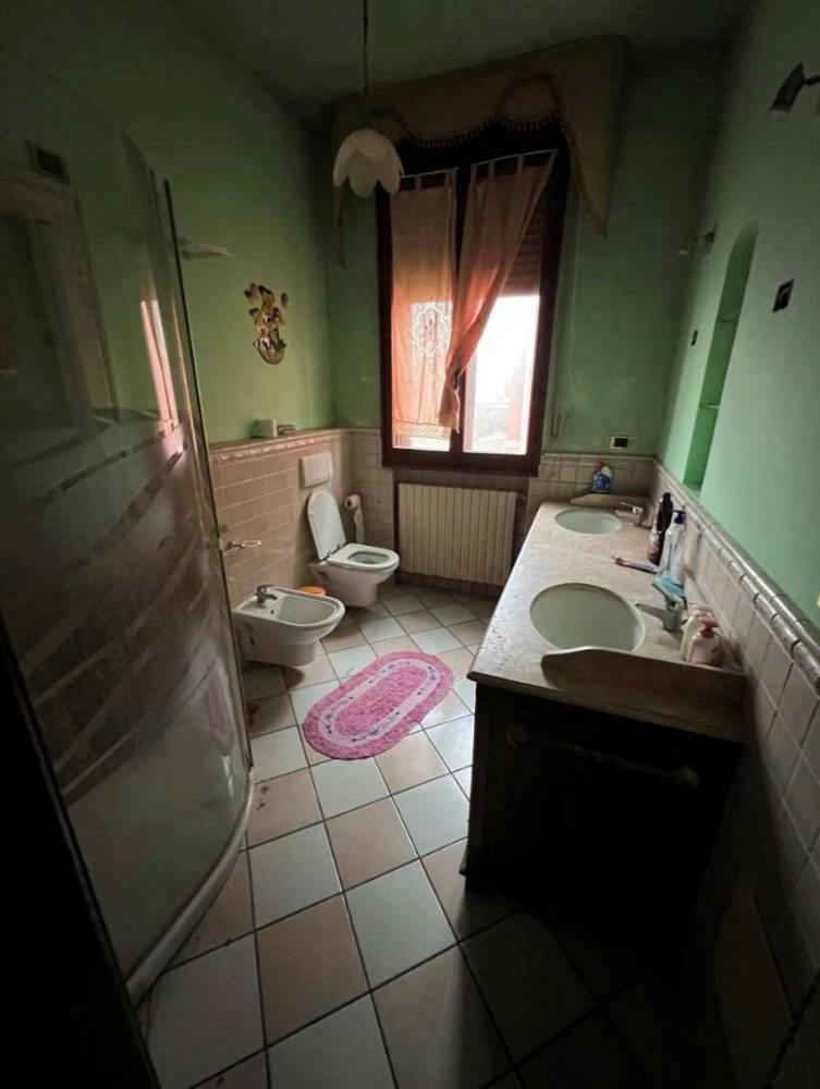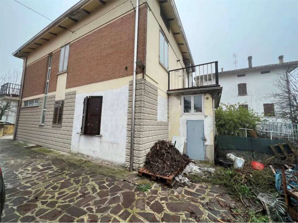 piena ed intera proprietà di immobile indipendente unifamiliare con area cortiliva esclusiva parzialmente gravata da servitù di passaggio pedonale e carraio lato nord, corrispondente all'ex mappale 75 e 257 di mq 75, a favore della contigua proprietà di cui al mapp. 74. Trattasi di abitazione su due piani oltre al sottotetto ( non abitabile e accessibile da botola ), composta al piano terreno da ingresso con scala per il piano superiore, soggiorno, disimpegno, wc-lavanderia, studio e due camere da letto, cantina; al primo piano due camere da letto, disimpegno e bagno, oltre a pranzo-cucina con zona soggiorno, terrazzo e balcone.