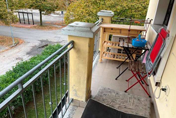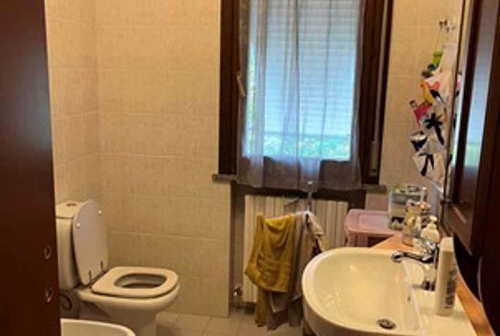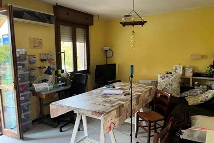 Lotto 1 - Appartamento, posto al piano primo di edificio condominiale, composto da soggiorno, cucina, disimpegno, bagno, ripostiglio, due camere e balcone. Di pertinenza, cantina, autorimessa di mq. 20, poste al piano seminterrato. Superficie commerciale complessiva, appartamento con cantina di mq. 90 circa.