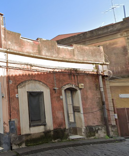 Appartamento in Giarre (CT), Frazione Macchia, via Risorgimento 27, mq 147 circa, composto: il piano terra da cinque vani ed accessori; il piano ammezzato da ripostiglio e terrazzino; il piano primo da terrazza di copertura; il piano sottostrada, abusivo, adibito a locale forno; piano cantinato composto da due ambienti distinti e cortile esterno