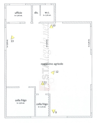 L'unità immobiliare posta al piano terra ad avente altezza media interna pari a metri 3,90 circa, è composta da ampio locale destinato a magazzino agricolo (nel quale sono presenti n. 2 celle frigo), ufficio, disimpegno e w.c - terreno agricolo della superficie commerciale di 1.789,00 mq, in piena proprietà per la quota di 1/1.