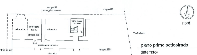 - piano interrato (cantina), avente altezza interna pari a mt. 2,40 circa, è composto da un unico vano adibito a locale di sgombero;