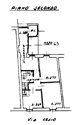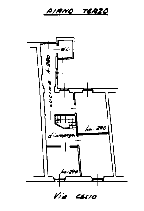 Il piano terzo ed ultimo è composto da disimpegno, tre camere, cucina e piccolo servizio igienico.