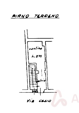 Il piano terra è composto da ingresso con accesso da strada pubblica Via Giuseppe Cesio, cantina e scala di collegamento al piano primo.