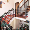 L'ingresso dal portico al piano terra conduce attraverso una scalinata pavimentata in cotto e con dei bei scorriamo in ferro al primo piano dove è situato l'appartamento, all'interno si trova una bellissima sala da pranzo con salotto e angolo tv., con la cucina in un ambiente diviso da una bellissima porta scorrevole a due ante in legno, con un caminetto e una porta a finestra adiacente al prima terrazzo.
