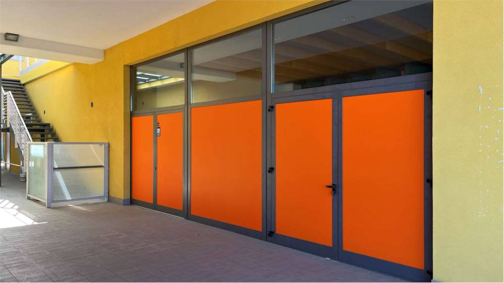 Il negozio dispone di tre ampie vetrine posizionate su due lati ad angolo, con vetri termici di elevato spessore (tripli), e possiede pertanto un doppio ingresso.