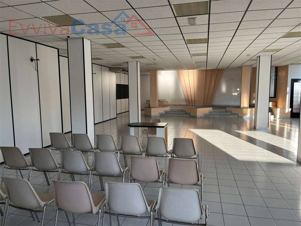 Internamente è stato suddiviso in vari ambienti con pareti "leggere" tipo ufficio, che potrai riposizionare a tuo piacimento. Dispone già di doppi servizi con piatto doccia, ciascuno con antibagno; poi ci sono due stanze tipo ufficio e un ripostiglio; il resto molto ampio è diviso in due ambienti principali che sono l'ingresso e il salone (o uditorio principale).